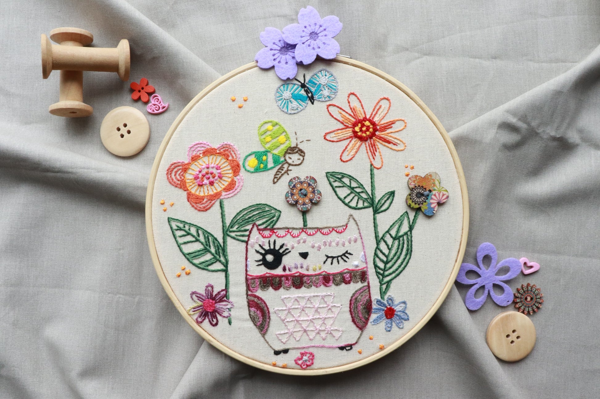 • Motif : Hibou dans son jardin de fleur